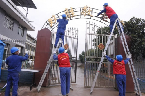 2月2日上午,孙荣和刘勇带领党员队员,扛上工器具和施工材料,来到双胜镇敬老院新型冠状病毒感染肺炎疫情隔离观察点,开始了他们紧张忙碌的供电施工。