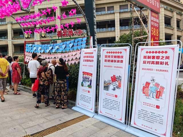 为助力辖区单身男女解决婚恋交友难题,帮助他们拓宽社交圈,搭建信息交流平台,近日,脚盆田社区网格服务站、新时代文明实践站携手“遇见婚姻”在岗盛综合广场打造了公益相亲角,把鹊桥搭在了居民的家门口,为适婚青年提供婚恋平台及交友渠道。