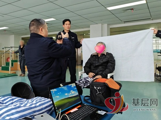 得知情况后,当天下午,人境大队副大队长周刚就带领民辅警来到王大爷所在医院,为其补办身份证。社区医院没有白色背景墙,民辅警就将提前准备的白色背景布拿出来,顺利拍摄了照片,成功为王大爷补办好身份证。