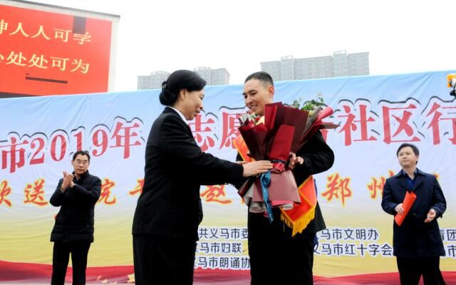 仪式上,义马市法院党组书记、院长张俊叶代表义马市法院全体干警向赵然送花。赵然宣读了捐献造血干细胞倡议书,号召大家积极加入造血干细胞志愿者队伍,以实际行动奉献爱心挽救他人生命,大力弘扬“人道,博爱,奉献”的红十字会精神。