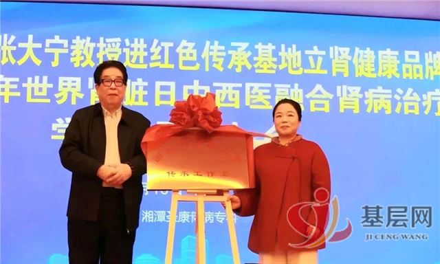 当天研讨会的一个重要议程就是举行国医大师张大宁传承工作室和湖南省健康服务业协会中西医联盟临床实践基地揭牌仪式。国医大师张大宁、何泽云教授、肖湘成教授为传承工作室和实践基地揭牌。此举不仅为湘潭带来先进的中医诊疗技术和理念,提高肾病等相关疾病的诊治能力,并将启动“湖湘肾病中医传承人培养计划”,通过师带徒 + 人工智能等方式,培养一批精准中医人才,为湘潭中医事业的发展提供坚实的人才储备。