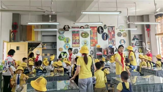随后,幼儿园小朋友参观了学校食堂、和平楼大厅、一年级课堂常规、少先队活动室、艺术教室、共学长廊、阅览室、图书室、和谐楼大厅。