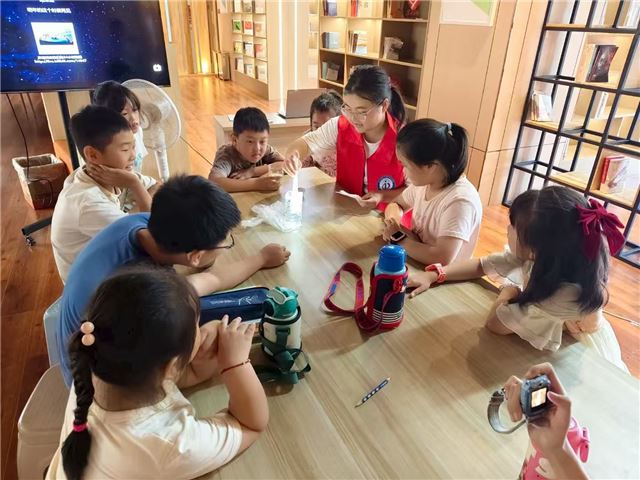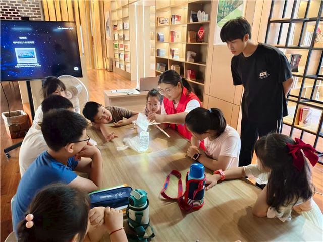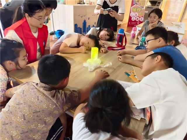 7月30日,曲阜师范大学计算机学院“青衿致远,素履笃行”实践队成员前往日照市石臼街道海景社区“小草学堂”,一场“维生素B2流星雨”科学小实验点亮孩子们的好奇心。志愿者身穿红马甲,将维生素B2融入透明溶液,借助强光激发,瓶中瞬间泛起梦幻荧光,宛如流星雨坠落。孩子们围坐桌前,紧盯着实验现象,眼神里满是惊叹。志愿者一边演示,一边拆解科学原理——从维生素B2的荧光特性,到光与物质的奇妙反应,引导大家观察细节、大胆猜想。当黄色荧光在瓶中流动时,孩子们踊跃提问,在互动中触摸科学的边界。这场实验让孩子们在“奇幻现象”中叩开科学之门,将趣味与知识交织,为社区暑期课堂注入探索活力,也让科学的种子在童真里悄然萌芽。(撰稿人:马振华“青衿致远,素履笃行”实践队)