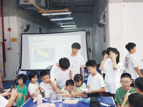 紧扣国家海洋强国战略,实践队将专业优势融入“蓝色科普”课堂。7月7日至8日,通过四大洋认知、海洋生态短片解析,唤醒孩子们的海洋保护意识;以郑和下西洋历史重现、军舰折纸实践,让航海文化变得可触可感;更通过船舶载重实验、旗语操互动、船模解析等环节,揭秘现代航海科技原理,以“从独木舟到超级货轮”的主线,在孩子们心中播下“经略海洋”的蓝色种子。