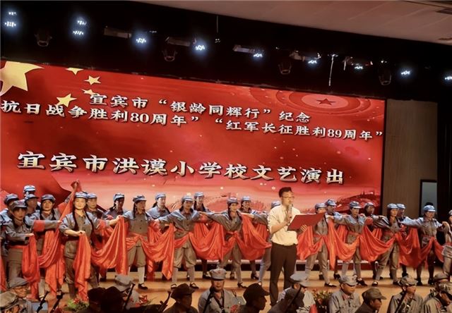 9月25日下午4时,宜宾市群艺协会走进宜宾市洪谟小学校,在学校多功能厅隆重举行“银龄同辉行”文艺慰问演出。此次活动旨在纪念中国人民抗日战争暨世界反法西斯战争胜利80周年、遵义会议90周年、红军长征胜利89周年,并庆祝中华人民共和国成立76周年,为全校师生带来一场红色主题的艺术盛宴。