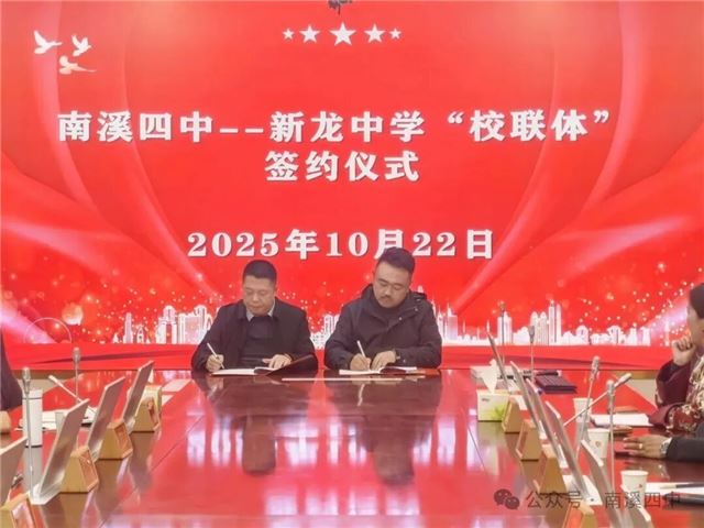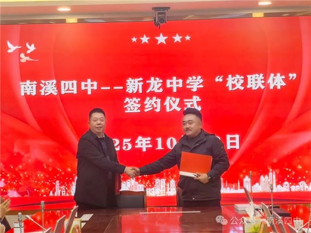 为推进区域教育优质均衡发展,10月22日,甘孜州新龙县中学(教师进修校)与宜宾市南溪区第四中学校2025-2028年校联体工作协议签约仪式顺利完成。