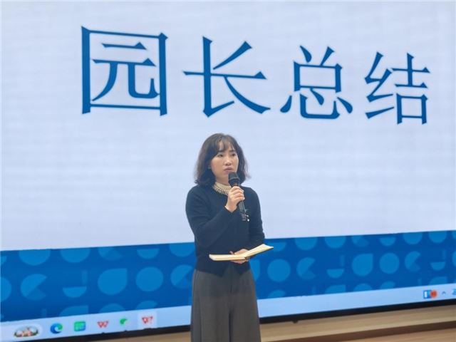 园长刘利对本次活动进行总结。她肯定了青蓝工程的重要价值,要求师傅们履行职责,徒弟们保持虚心好学的态度,并希望全体师徒以结对为起点,共同探索幼教新思路、新方法,为幼儿园的高质量发展贡献力量。