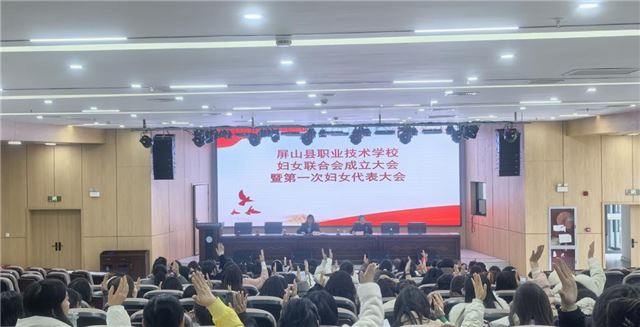 11月19日下午,屏山县职业技术学校妇女联合会成立大会暨第一届妇女代表大会在学校学术报告厅召开。大会由副校长李丽主持,校党总支副书记、校长庄云川以及学校妇女代表出席会议。