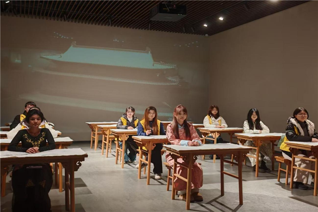 图为实践队员体验复原古代课堂教学,体悟“有教无类”教育思想,探索传统教育智慧赋能少数民族地区教育发展的有效路径。苏迅 供图