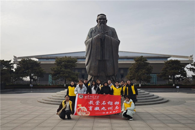 2026年1月15日,曲阜师范大学教育学院“教萦石榴籽,育凝九州志”社会实践队紧扣新型城镇化与乡村振兴战略要求,走进孔子博物馆与曲阜民族公园开展文化传承与民族团结主题实践活动,旨在探寻中华优秀传统文化赋能少数民族地区振兴的有效路径。在孔子博物馆,队员们化身志愿讲解员为游客解读礼乐文化文物的历史渊源与内涵,沉浸式体验古代课堂并深入感悟儒家“有教无类”的教育智慧,探讨其对少数民族教育教学发展的借鉴价值;在曲阜民族公园,队员们在主题景观前聆听讲解、交流探讨,将儒家“和而不同”理念与铸牢中华民族共同体意识相结合,明晰文化传承与民族团结的内在关联。此次活动推动队员们在实践中传承中华文脉、在交流中凝聚青春共识,切实以实际行动投身文化传承与民族团结进步事业,为少数民族地区发展贡献力量,践行新时代青年的责任与担当。(通讯员 热依汉古丽·图尔荪托合提 张涛 冯阿迪雅)