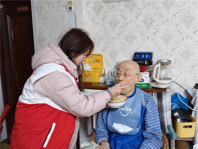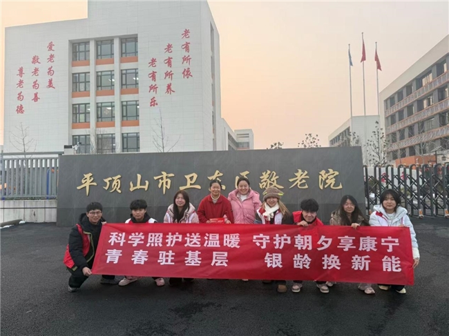 在平顶山市卫东区敬老院,“暖阳护康”团队由专业教师带领,联合社区网格员与签约护工,开展“线上平台派单+线下精准服务”的试点运行。团队依托自主研发的智慧平台,实现周一至周五由专业护理人员上门提供医疗照护,周六周日则由护理学院在校学生接力开展志愿服务,既让长期紧绷的家属护工得以“喘口气”,又为在校学生提供了宝贵的实战实习机会。平台同步开通药品、医疗器械等“医护外卖”功能,老人家属通过手机一键下单,志愿者即可送物上门,真正打通了社区养老服务的“最后一百米”。
