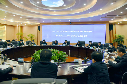 4月13日上午,由党组书记、院长彭世理主持,岳阳市中级人民法院召开党组(扩大)专题会议,传达学习市委书记王一鸥调研政法工作会议指示精神。全体院领导、处级以上干部及庭室正职等参会。