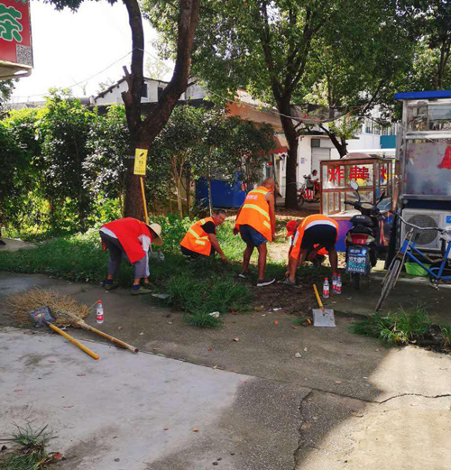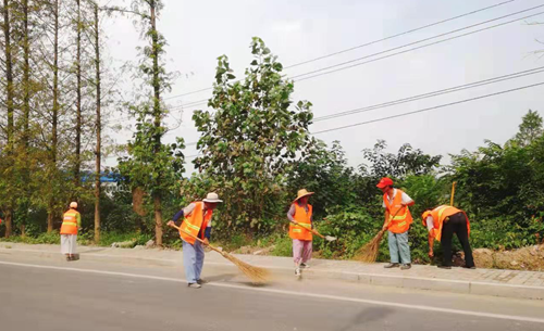 保洁人员和志愿者共同精心打扫公路与街道
