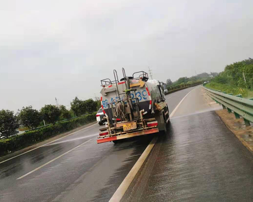 洒水车在道路上作业