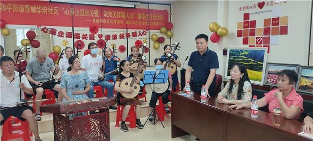 活动开始,社区器乐兴趣班的10余位学员献上了精彩的乐团演奏,其中最有特点的是用传统乐器演奏现代歌曲《生日快乐》。在愉快的音乐声中,和平街道办事处副主任刘刚、青城华府社区书记余敏和企业退休人员代表一起,点燃生日蜡烛为企业退休人员庆生,并一一分发蛋糕。