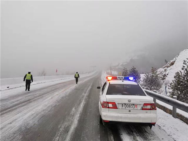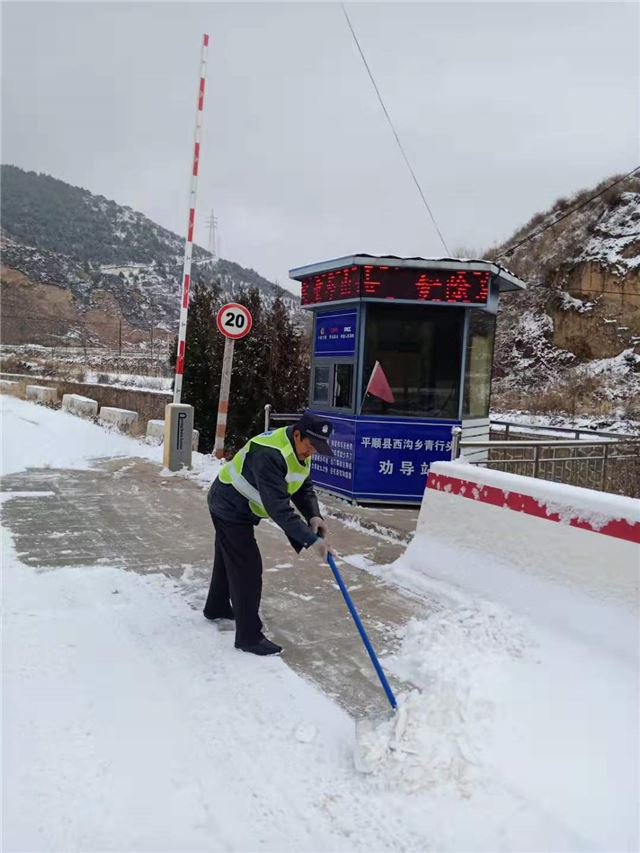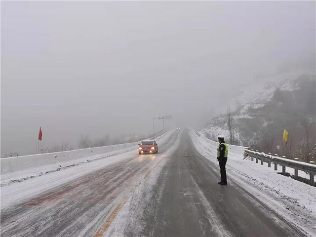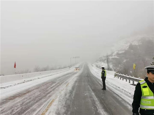 县道花壶线寺岭段地处平顺南端的高寒山区,不仅雪大,而且冰厚。西沟中队的民警们从早7时到达这里后,就没有挪动地方,他们深知此处山高坡陡,在这大雪天里司机行车危险系数更大。他们在此地严防死守,一方面除冰,一方面提示过往司机谨慎慢行。