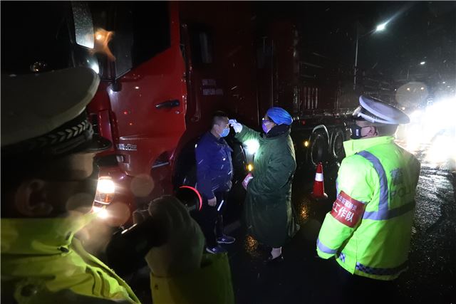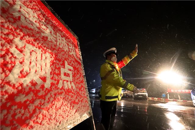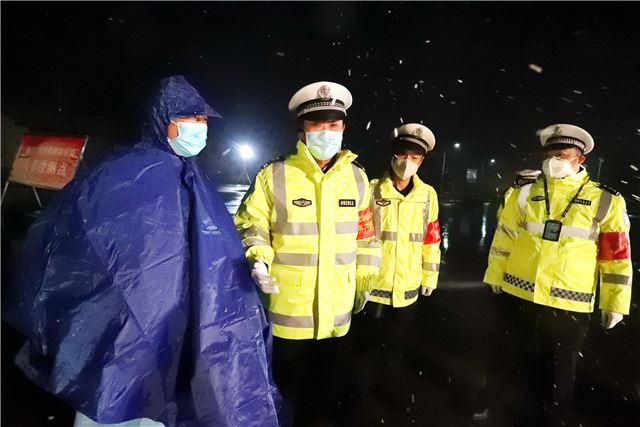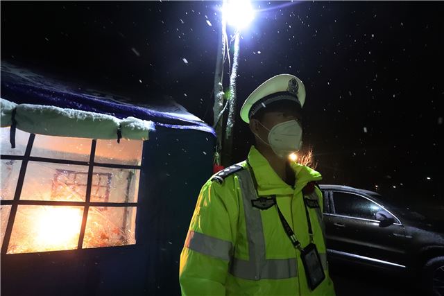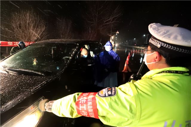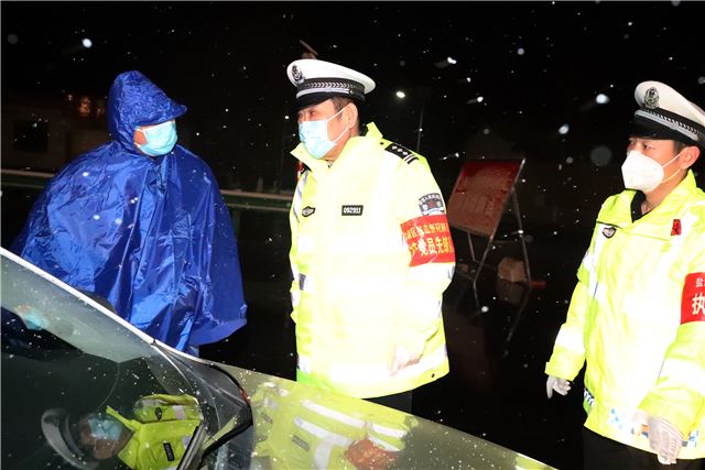 当晚,山西运城市下起了鹅毛大雪,风雪夜正遇上疫情防控关键时期,盐湖公安交警从领导到一线中队民警,上下团结,众志成城,坚守在防控疫情一线,他们积极配合卫健部门冒着鹅毛大雪,按照防控程序,逐人逐车进行严密排查,坚决打赢疫情防控阻击战。