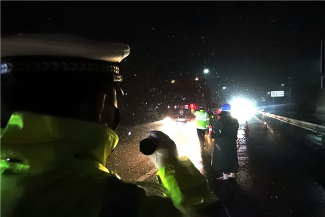 本网讯(王站锋 葛崇收)2月5日晚,运城市公安局盐湖公安分局交警大队民警冒着鹅毛大雪在运临路疫情防控点严密排查车辆和群众。