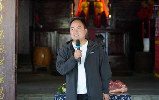 全体人员齐诵《新化山歌祖训》,“不惧风雨传雅韵,敢教四海共铿锵”的铿锵之声回荡祠堂,彰显非遗文化的深厚底蕴。