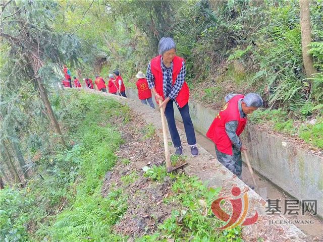 图为新化县琅塘镇太平灌区'“琅塘星”志愿者正在清理渠道