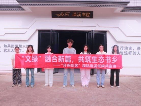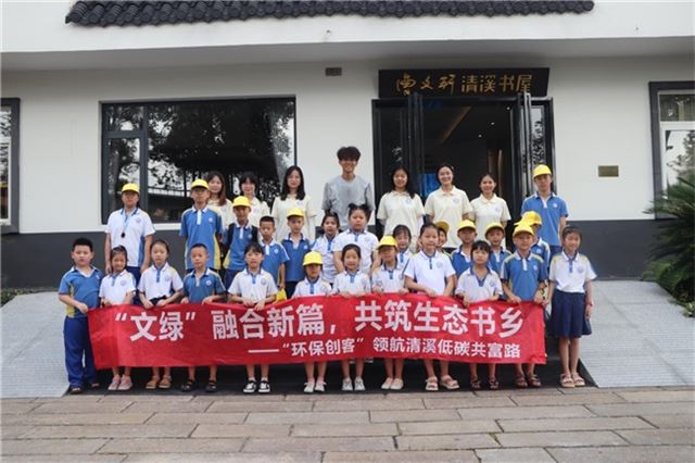 图为环保创客实践团在刘慈欣清溪书屋开展“生态文明进清溪”读书会后合影留念。 彭晨 供图