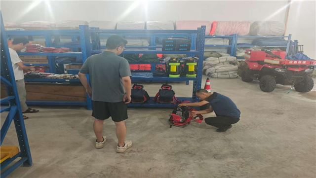 对全区的应急救援物资进行全面“体检”。督促各镇(街道)每月开展物资储备自查。指导组现场测试高压抽水泵、灭火器、应急照明、通信设备等应急救援装备性能,确保设备能正常启动、性能达标,避免“备而无用”。此次检查总体情况良好,各级储备库物资管理规范、台账清晰,但个别点位存在防潮措施不足、部分设备维护记录不全等问题,指导组当场提出整改意见并要求限时整改到位。
