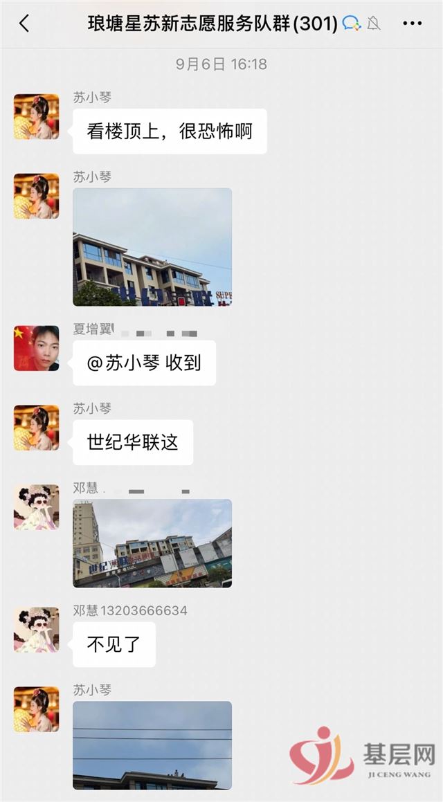 “6栋8楼有四个小孩爬到屋顶了!楼顶没护栏,太危险了!”9月6日16时18分,苏溪湖中学教师苏小琴的这条紧急信息,在苏新社区志愿者群里炸出一片紧迫的涟漪。