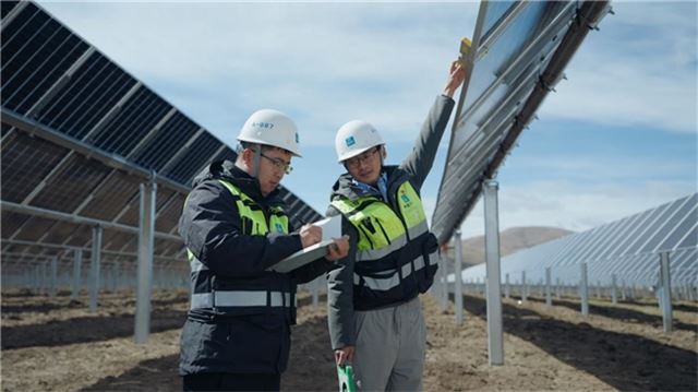 项目建设过程中,面临着高海拔、极寒天气带来的多重挑战。项目地处海拔4000米区域,平均气温低至-20℃,施工现场冻土层深厚,打桩作业难度极大,如同“在石头上插筷子”,精度和稳定性控制难度高,严重影响施工进度。为攻克这一难题,中建八局项目团队多次开展实验,最终决定选用PHC管桩代替传统灌注桩,在提升桩基稳定性的同时加快施工进度。同时,团队采用履带式高原打桩机,并搭配三维可视化管桩定位技术,大幅提升施工效率与精度。凭借科学的施工方案和高效的执行能力,项目团队仅用128天就完成了46299根基础桩、5427组支架与组件、13.86公里集电线路、1000公里低压直流线路、44公里低压交流线路、34台箱变、373台逆变器、1台站用变、1座汇集站以及7.35公里新建道路的建设任务,创造了高海拔地区新能源项目建设的高效典范。