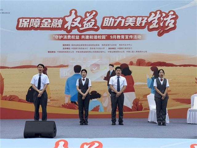 为创新金融知识传播形式,切实提升高校师生金融素养与权益保障意识,中国银行西咸新区支行走进西安电子科技大学,以“青春护航·消保同行”为主题开展专项宣传活动,通过原创歌唱表演与专业知识宣讲相结合的方式,让金融消保知识深入校园、扎根人心。