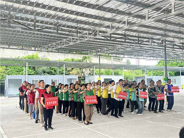 当天的趣味运动会是绝对的“主角”。60名参与者分成6支队伍——世纪摩尔超市队、金科物业队、社区党员队、退役军人队、商户代表队和联户员代表队,每队10人,队员们个个摩拳擦掌,斗志昂扬。