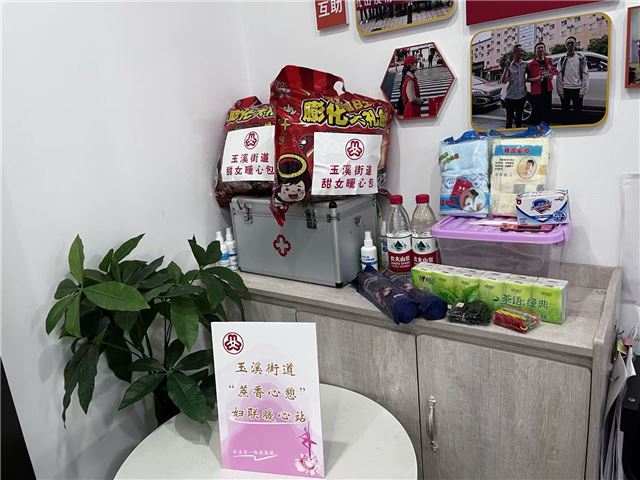 玉溪街道妇联相关负责人与社区工作人员共同为“暖心站”授牌,随后将“蔗香心憩妇联暖心站”牌匾稳稳悬挂于驿站入口处,醒目的标识成为社区里一道靓丽的风景线。牌匾上墙后,众人一同参观了“暖心站”内部陈设:功能区划分清晰,便民服务角配备了饮水机、共享充电宝、应急药箱、雨伞等实用物资,以备妇女群众不时之需;舒适的休憩座椅与温馨的装饰搭配,让整个空间充满“娘家人”的暖意。