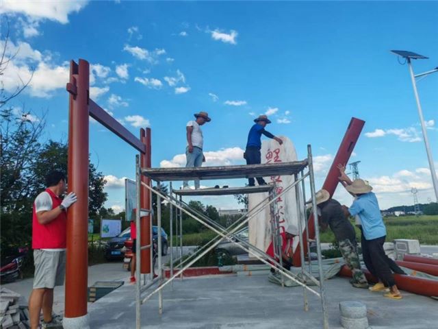 在项目开工前,全村党员大会就制定了由工作队提供材料资金,组织全村党员带头和群众志愿者共同出义务工来共建项目的规定。项目建设恰逢国庆中秋长假,大家主动放弃休息时间,有的负责搬运建材、搅拌水泥,有的参与搭建顶棚、安装座椅,有的忙着清理施工垃圾,虽然“秋老虎”发威连续高温天气,但在项目现场,党员群众克服困难,一派热火朝天的劳动景象。经过15天的共同努力,31名党员带群众投入志愿者义务劳动53个工,四座公交招呼亭顺利建成:传统的中式凉亭建筑美观简洁,还配备了石桌、座椅,不仅为将来村民候车、休憩提供了舒适的场所,还成为村内一道靓丽的风景线。