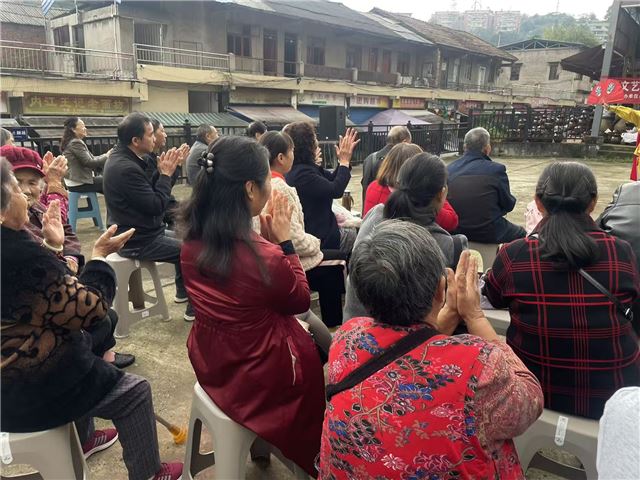 活动前,为保证节目顺利进行,社区干部和网格员积极协助演出人员精心布置活动现场并极力维持秩序。在演出过程中,文艺工作者带来了形式多样、内容丰富的精彩表演。其中的舞蹈节目柔美婉约、活力四射,演员用灵动的舞姿传递着艺术的魅力;川剧变脸表演更是将活动推向高潮,变幻莫测的脸谱更是让居民连连称奇,赞叹不已;另外,富有地方特色的民间舞蹈,同样生动展现了传统文化的浓厚底蕴。