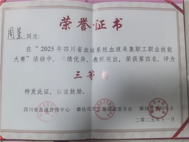 此次赛事既为全省血站技能人才搭建了交流互鉴的平台,也让我站收获了兄弟省市无偿献血事业发展的宝贵经验。未来,内江市中心血站将以此次获奖为契机,持续强化职工职业技能与服务规范化建设,为保障临床用血安全、推动采供血事业高质量发展筑牢根基。(来源:内江市中心血站)