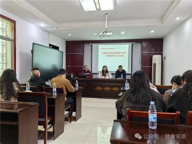 近日,江西省萍乡市安源区卫健系统在安源区疾控中心会议室召开流感等冬春季传染病防治工作会议。区卫健委党委委员、副主任、区疾控局专职局长张灵同志主持会议,区卫健委疾控股长、区属各卫生健康单位传染病防控工作分管领导、相关科室负责同志参加会议
