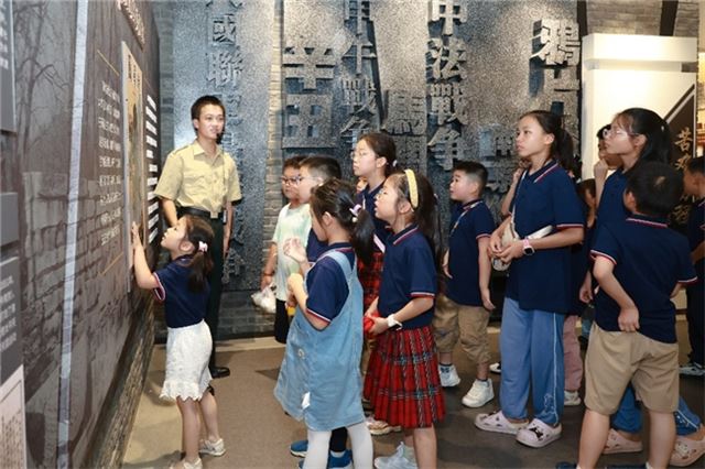 孩子们在这一展区驻足,凝视鸦片战争浮雕和南京条约的复印本。讲解员介绍了近代史上主权沦丧的历史,孩子们在参观过程和讲解中切实体会到了原来课本里的不平等条约如此沉重。近代史是中华民族的屈辱史,也是一部重生史,通过触摸历史的伤痕启示我们落后就要挨打,自强不息的道理。