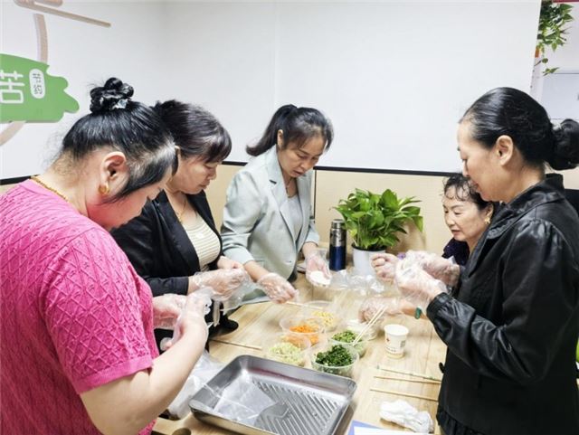 活动伊始,主持人首先向到场居民详细宣读了活动注意事项,涵盖食品安全、现场秩序维护等内容,确保活动安全有序开展。活动正式拉开帷幕后,志愿者们迅速进入状态。他们提前精心准备好新鲜的饺子馅,有条不紊地为居民分发一次性手套、托盘等包饺子材料,并耐心引导居民有序入座。在包饺子环节,大家围坐在一起,分工协作,一边熟练地操作着,一边拉着家常,分享着生活中的趣事,欢声笑语不断,整个活动现场俨然一个温馨的大家庭。对于部分初次尝试包饺子、手法生疏的居民,志愿者们主动上前,手把手进行教学,从捏褶技巧到形状塑造,细致耐心地指导,让每一位居民都能参与到包饺子的乐趣中。