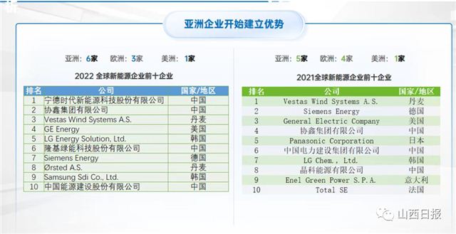 在最新公布的全球新能源企业500强榜单中,晋能控股电力集团清洁能源有限公司、晋能控股电力集团山西潞安太阳能科技有限责任公司、晋能控股山西电力股份有限公司等3家山西企业上榜,分别位列第115位、285位、497位。“从这个榜单中可以看出,山西在能源转型上投入了大力气,并收获了很好的阶段性成果。”魏秋利相信,随着能源革命的不断推进,山西在榜单中后来居上的可能性很大,从山西的煤制氢技术和能源布局来看,在“十四五”末期,很可能会在榜单上看到山西氢能发展扭转态势的局面。