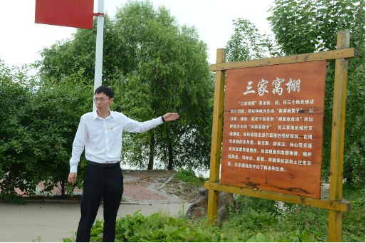 图为团县委郝书记为团队介绍三家窝棚