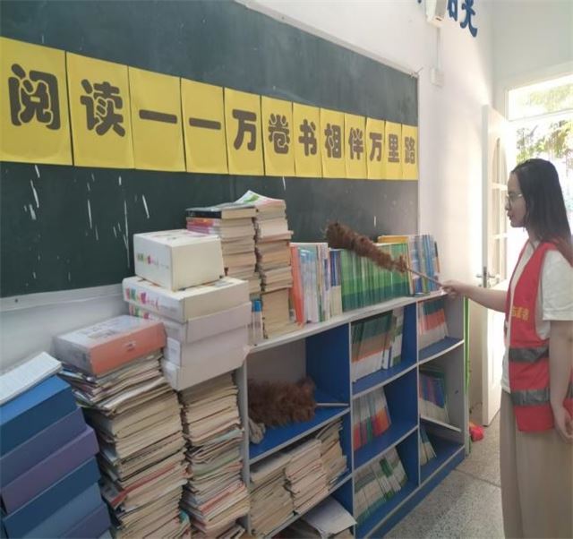 在拉堡镇中心小学,志愿者韦佳欣则当起了小小图书管理员,针对社区青少年,志愿者们组织 “阅读分享会”,围绕《平凡的世界》《红星照耀中国》等书籍展开讨论,引导大家在交流中深化对书籍的理解,培养批判性思维;同时,志愿者们还协助社区整理闲置空间,搭建起温馨的 “暑期读书角”,为居民提供便捷的阅读场所,让书香浸润社区每个角落。