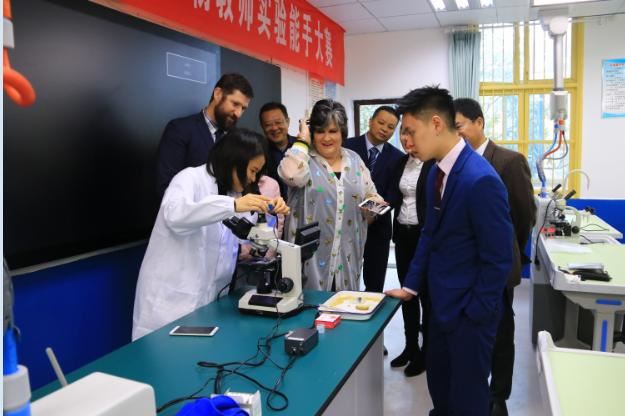 新西兰客人首先参观了湘机中学校园,客人边参观边夸赞校园里大量的高大树木美化了环境。随后,客人到“未来教室”观看了阳彩霞老师的一堂妙趣纷呈的生物课,在吊臂式生物实验室观摩了肖益老师的生物课实验准备,参观了男生宿舍,到田径场观看学生的体育课、并与高336班学生愉快互动。客人每到一处都与湘机中学师生进行友好交流,询问有关教育教学和仪器设备使用等具体情况,同时,湘机中学的师生也对远道而来的客人表示出了热忱的欢迎之情。
