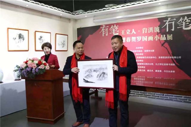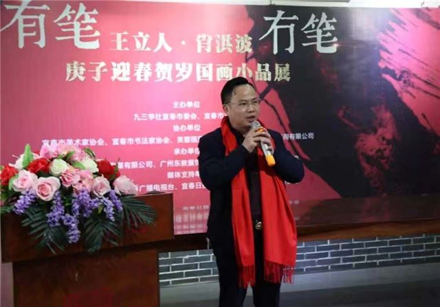 宾朋云集,深情厚爱贺画展;艺坛双璧,国画小品迎新春。今天的书画院高朋满座,一派喜庆祥和的气氛;有笔冇笔·王立人/肖洪波庚子迎春贺岁国画小品展在九三学社宜春书画院隆重开展。