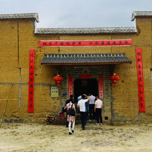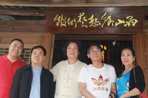 陆地的目光很特別,虽身居高位却平易近人,温雅一身文艺范,常口若悬河妙语连珠,能写一手好书法,但还谦恭不张扬。常言道,有緣自相融,这雨山虽常闷騷,偶遇这大官员,也不怯场,笔下生发朵朵花娇也惊人。陆地看着脫口一句:“雨山这桃花水灵灵,会勾魂”,雨山边画边说:“画桃花与画梅花不同,在于桃花开時有叶,梅花没有。”不知是陆地的关注,还是雨山的声音,或是雨山那落肩的长发疯卷。只听,“呀!好美”一声,雨山抬头一怔,有美眉靠近身边观赏,浅蓝紫的长裙,披一件水紅色的外套,看上去楚楚动人,面若桃红脸帶微笑。雨山心里咯噔一下,被美眉赞美,总是愉悦的。略稍迟凝,只见雨山提笔落款“桃花园里可耕田”,一挥而就,惊诧美眉。美眉轻语:“大师可否也赏賜一幅”。好,雨山应充落地有声。只是,今宵有缘无份,時间来不及,待返榕伺机奉上。美眉莞尔,陆地笑笑说:“桃花园里可耕田,很好,既有情怀,更有胸怀,有大格局。”返程途中,本团队组了群“桃之摇摇”,首任群主摇摇。大家兴致颇高,雨山打开手机,一曲山林水声鸟鸣的乡音,从“雨山乡愁集”中,深情流出,环绕车厢,愰若全车人与大巴都相恋其中,不忍分离。那是雨山和文荣,一年前合作策划的“记住八闽”乡愁专题,获得省文艺基金专项资助,并开启了行走创作之旅。返榕后,群聊甚欢,相邀相约不断,文艺交流就这样不经意间此启彼复,融汇贯通中升温升级,涌现出不少的好诗作、好书法、好画作。其中最值得一提的是,应文荣邀约,陆地、雨山、摇摇、翔子等几位知己,到文荣旗山艺术品展厅,品茗观赏畅怀。也就是这次雨山向陆地表达了,愿无偿捐赠乡愁集作品,以此,保护古民居建乡愁馆的意愿,得到了陆地的首肯和大力支持。于是,就有了第二次的古田之旅。金秋十月,惠风和畅。陆地谋划组团一行人马不虚张,帶着情怀,怀着愿景,再次来到古田凤亭村实地考察,年青有为的县长党帅,务实勤勉,话虽不多却句句落在实处,经商讨原则上赞同了由雨山看上的两幢明清时期的连排古民居,保护性维修,以此,作为“雨山乡愁艺术馆”馆址。三天后,经县委县政府联席会议通过立项,由县委常委宣传部长余榕梅负责与雨山对接工作。余榕梅同志是古田当地土生土长,从乡村最基层村干部做起,热情纯朴,有信仰敢担当。她常帶头亲临工地,吃苦耐劳,经兩年有条不紊努力工作,“雨山乡愁艺术馆”落成。