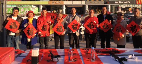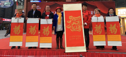 活动期间,10多个文艺团队及表演艺术家,以饱满的热情表演了丰富多彩的文艺节目,用歌用舞用朗诵迎接新年的到来。家和万事兴团队的书法家们当场挥毫泼墨,把一副一副春联和“福”字送给观看市民,家和万事兴团队指导老师关自在亲自上阵挥毫落笔,把第一个“福”字送给市民。