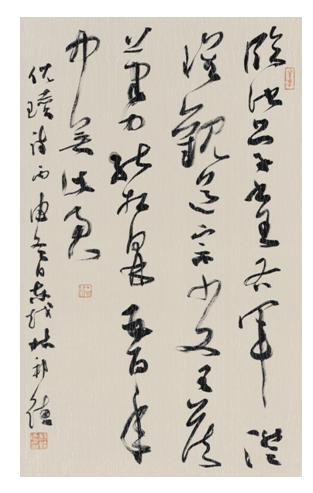 “2015年9月间,我应邀出席在宁波举办的一个书法展览开幕式,第一次与同为嘉宾的林邦德谋面。后来,他参加了中国人民大学艺术学院为我开设的草书专题研修班。客观地说,在很多方面,他是可以教我的,可他甘愿做我的学生。在与书法相关的多领域他都已取得了不俗成果,但他仍要在58岁‘高龄’之际投师深造,足以印证其虚怀若谷与大志远谋。”