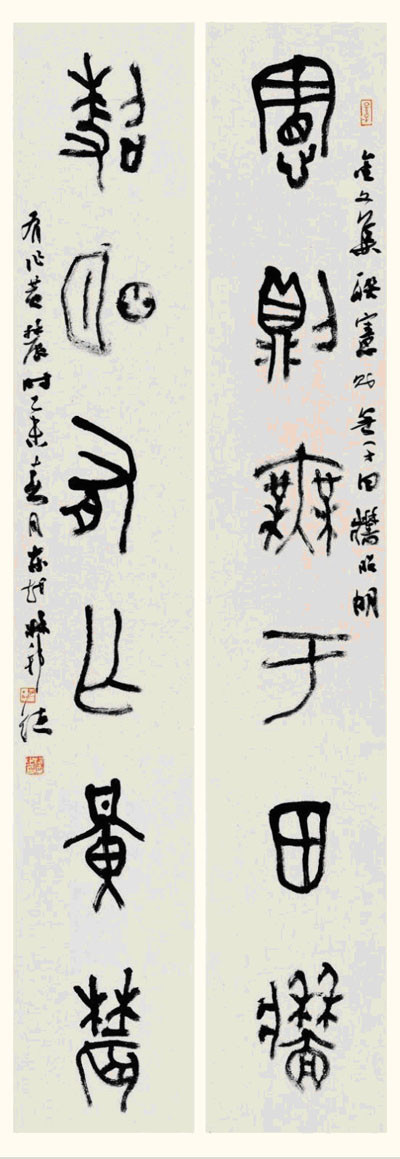 书法挂历《林邦德楹联书法精品鉴赏》由北京荣宝斋出版,集萃了他近年创作的楹联书法,涵盖了篆、隶、楷、行、草五体,从作品到装帧精美而雅致,实用性和艺术性达到了高度完美的结合。