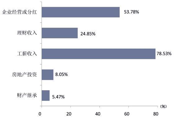 工资奖金是富裕家庭财富的最主要来源,其次是企业经营和分红,来自金融产品投资的财富占比超过房地产。房地产需要较大的资金量才能变现,加之政策管控下的房地产溢价能力减弱,一些门槛不高的金融产品反倒成为富裕人群青睐的财产性收入来源。