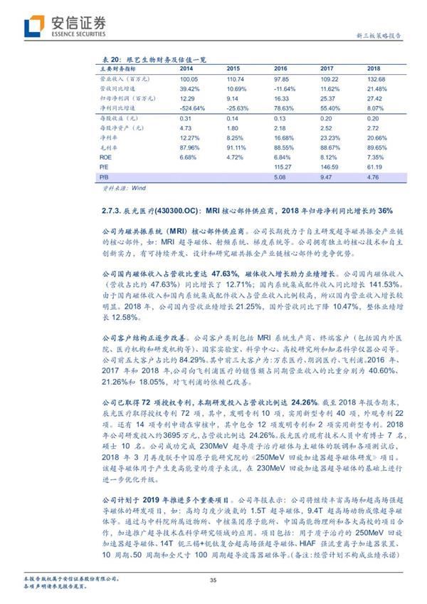 三板公司原料药企业表现较好:大部分原料药、辅料、中间体的产品要求没有药品严格,但由于这些产品对于最终的药品质量而言影响相对较大,故客户之间的合作通常比较持久。这一部分企业的业绩也相对稳健。先锋科技(831878.OC):嘧啶产品量价齐升,公司18年归母净利达6599万元。合佳医药(838641.OC):头孢类原料药和医药中间体供应商,净利达5195万。昊帆生物(837632.OC):多肽合成试剂主要供应商,18年净利同比增长约91.56%。