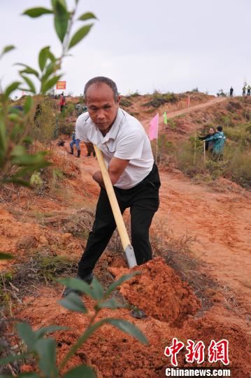 长汀县水土流失治理草根英雄“断臂铁人”兰林金在植树。 胡晓刚 摄