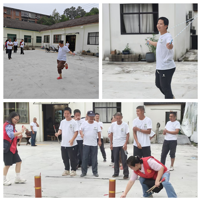 10月 7日,资阳区益馨家园院内变身欢乐现场,“参与一场文化互动” 活动热闹开启。志愿者结合学员身体状况,工作人员精心设计了拔河、跳绳、投壶三项趣味活动,并提前做好安全防护与分组安排。拔河比赛中,学员紧握绳索、齐声喊号,在齐心协力中感受团队的力量;跳绳环节,学员则展示着连贯的动作,现场掌声不断;投壶游戏里,大家瞄准壶口小心投掷,每一次成功都能引来阵阵欢呼。这场互动不仅让学员释放了活力,更在协作中拉近了彼此距离,欢声笑语洒满整个院子。